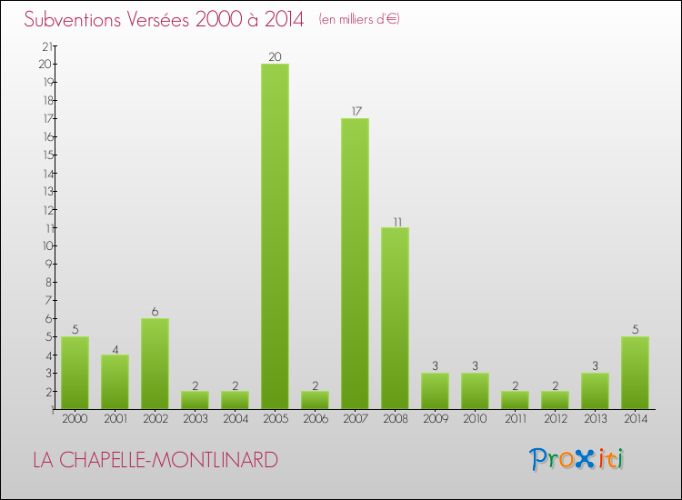 En 2014, à La Chapelle-Montlinard, ce budget est en baisse de 45.42 % par rapport à 2013.