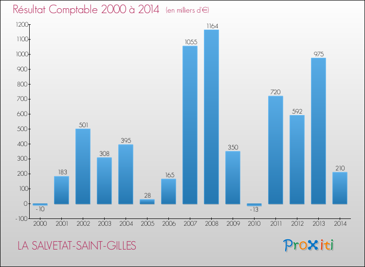 Le résultat comptable de la commune de La Salvetat-Saint-Gilles s'établissait ainsi à : + 210 000 € fin 2014.
