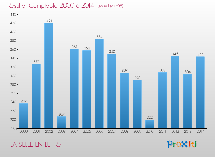 Le résultat comptable de la commune de La Selle-en-Luitré s'établissait ainsi à : + 344 000 € fin 2014.