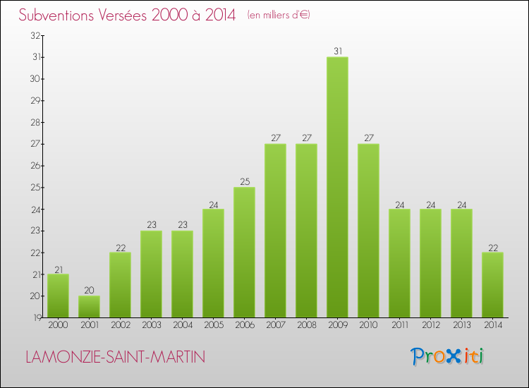 En 2014, à Lamonzie-Saint-Martin, ce budget est en baisse de 1.73 % par rapport à 2013.