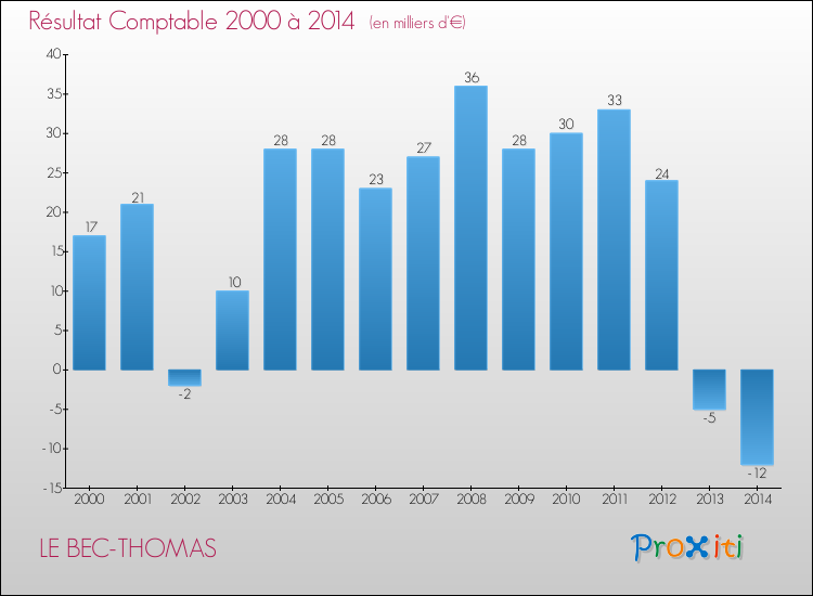 Le résultat comptable de la commune de Le Bec-Thomas s'établissait ainsi à : -12 000 € fin 2014 (recettes-dépenses).
