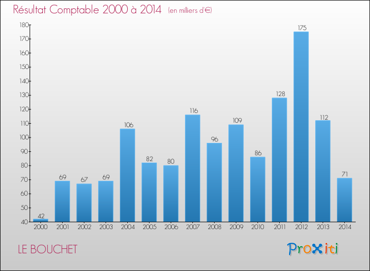 Le résultat comptable de la commune de Le Bouchet s'établissait ainsi à : + 71 000 € fin 2014.