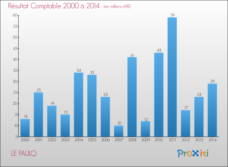 Evolution du résultat comptable pour LE FAULQ de 2000 à 2014