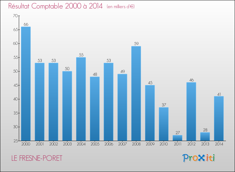 Le résultat comptable de la commune de Le Fresne-Poret s'établissait ainsi à : + 41 000 € fin 2014.
