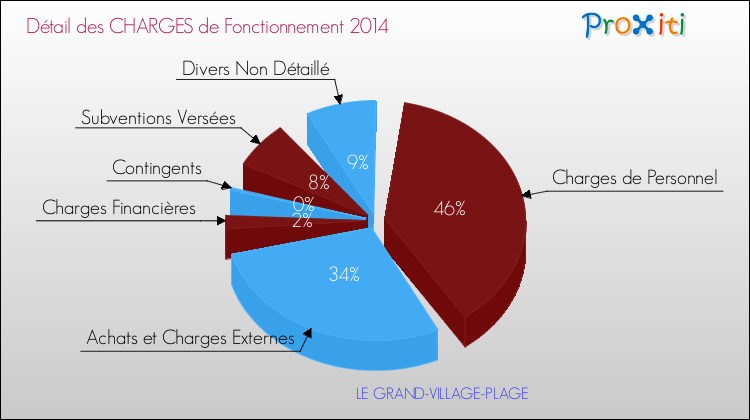 En 2014, les charges de fonctionnement de la commune de Le Grand-Village-Plage étaient de : 1 157 000 €