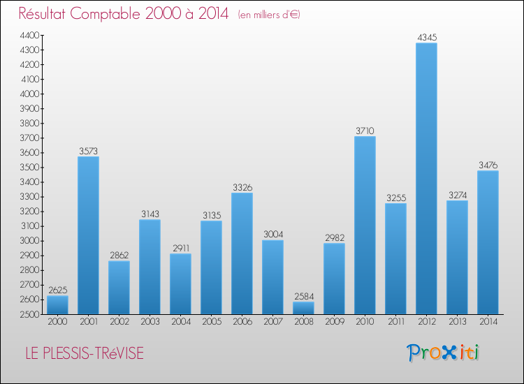 Evolution du résultat comptable pour LE PLESSIS-TRéVISE de 2000 à 2014