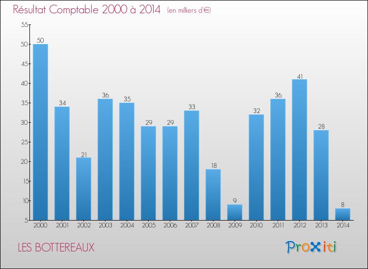 Le résultat comptable de la commune de Les Bottereaux s'établissait ainsi à : + 8 000 € fin 2014.