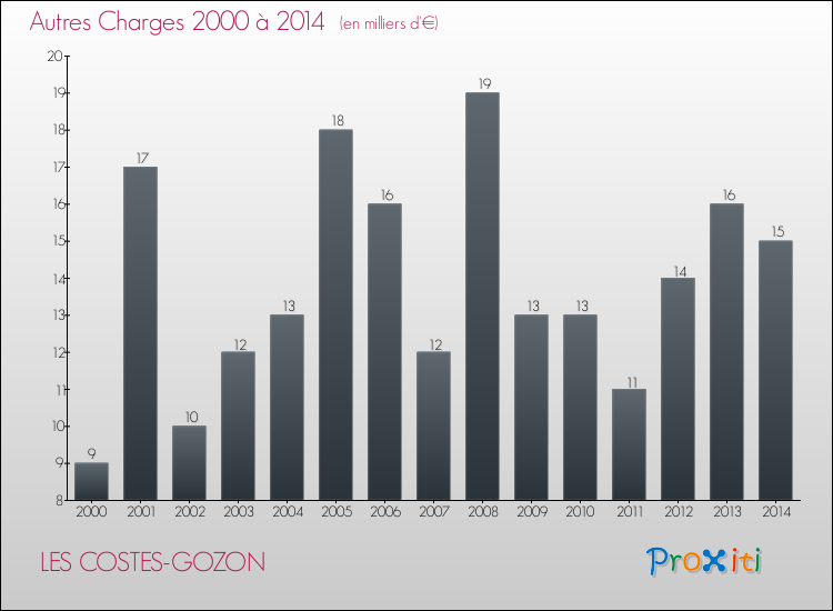 En 2014, à Les Costes-Gozon, ce budget est en baisse de 19.89 % par rapport à 2013.
