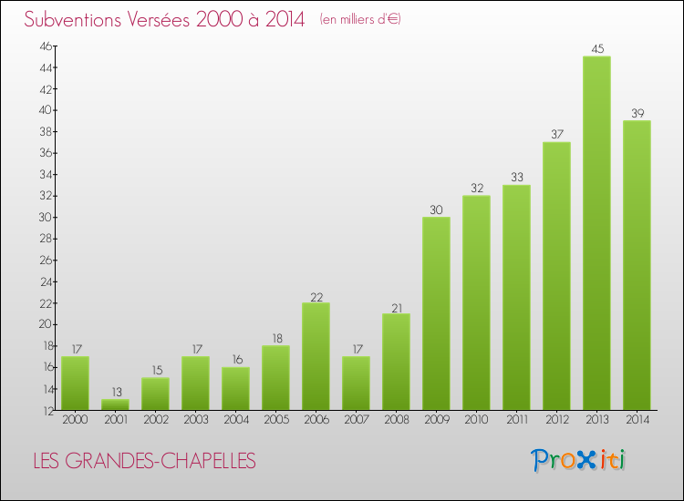 En 2014, à Les Grandes-Chapelles, ce budget est en augmentation de 0.36 % par rapport à 2013.