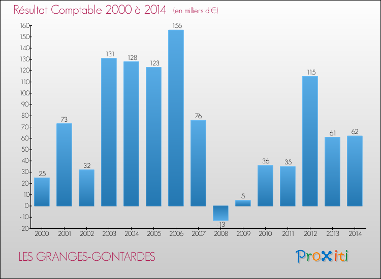 Evolution du résultat comptable pour LES GRANGES-GONTARDES de 2000 à 2014