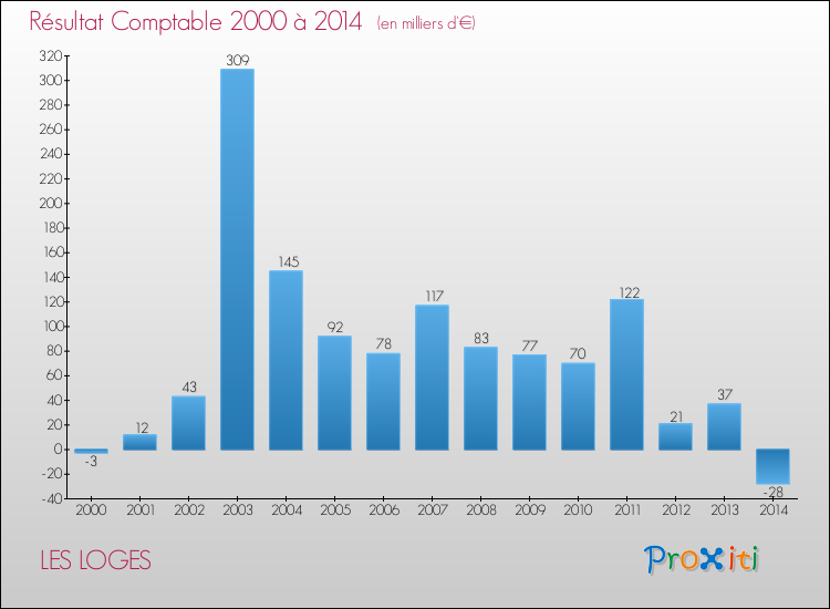 Le résultat comptable de la commune de Les Loges s'établissait ainsi à : -28 000 € fin 2014 (recettes-dépenses).