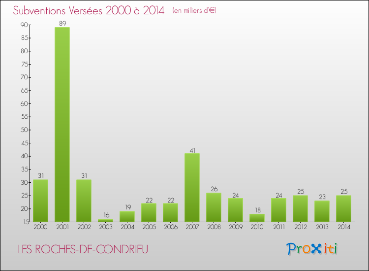 En 2014, à Les Roches-de-Condrieu, ce budget est en baisse de 10.1 % par rapport à 2013.
