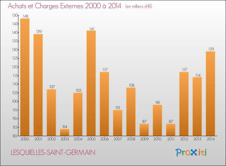En 2014, à Lesquielles-Saint-Germain, ce budget est en baisse de 3.37 % par rapport à 2013.