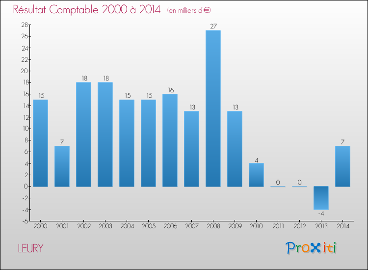 Le résultat comptable de la commune de Leury s'établissait ainsi à : + 7 000 € fin 2014.
