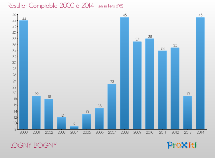 Le résultat comptable de la commune de Logny-Bogny s'établissait ainsi à : + 45 000 € fin 2014.