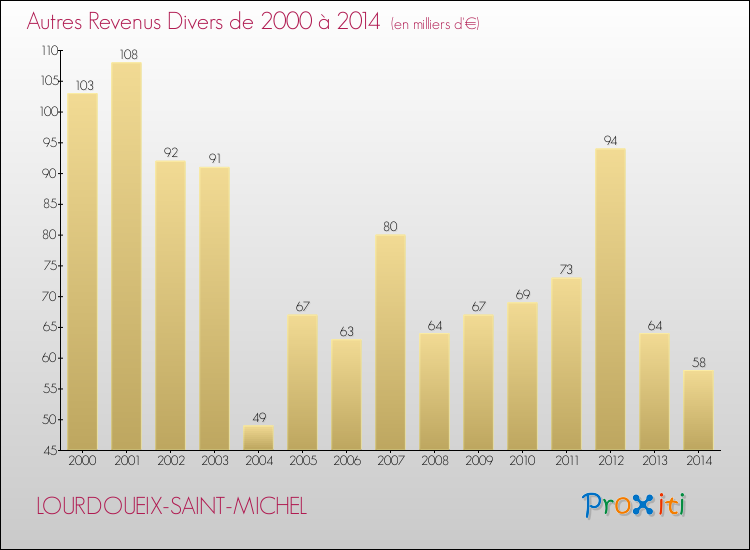 En 2014, à Lourdoueix-Saint-Michel, ce budget est en baisse de 0.53 % par rapport à 2013.
