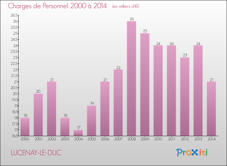 En 2014, à Lucenay-le-Duc, ce budget est en baisse de 38.25 % par rapport à 2013.