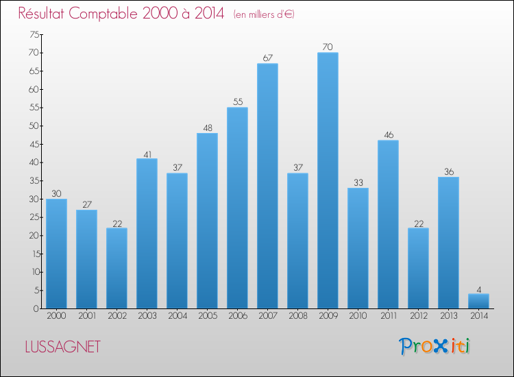 Le résultat comptable de la commune de Lussagnet s'établissait ainsi à : + 4 000 € fin 2014.