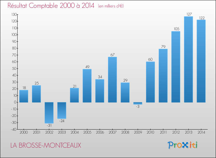 Le résultat comptable de la commune de La Brosse-Montceaux s'établissait ainsi à : + 122 000 € fin 2014.