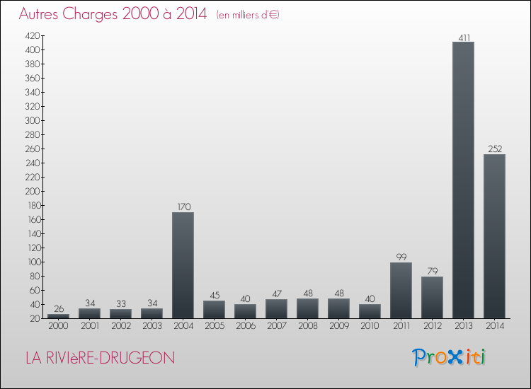 En 2014, à La Rivière-Drugeon, ce budget est en baisse de 40.48 % par rapport à 2013.