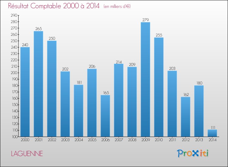Le résultat comptable de la commune de Laguenne s'établissait ainsi à : + 111 000 € fin 2014.