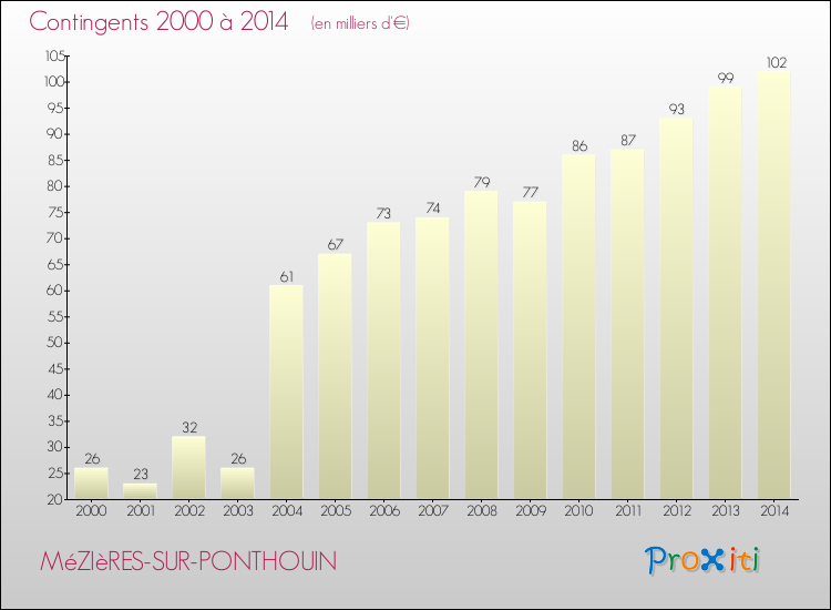 En 2014, à Mézières-sur-Ponthouin, ce budget est en augmentation de 1.26 % par rapport à 2013.