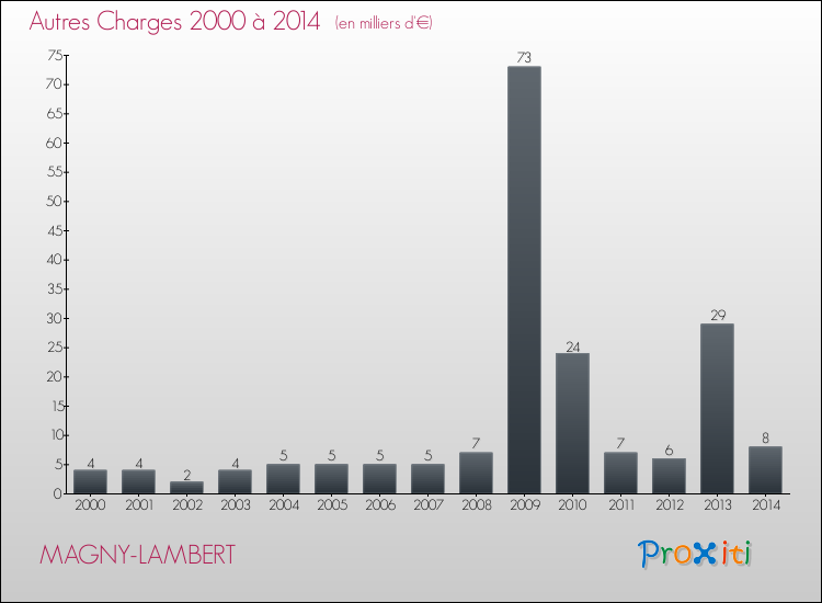En 2014, à Magny-Lambert, ce budget est en baisse de 20.57 % par rapport à 2013.