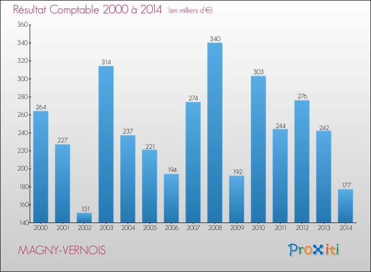 Le résultat comptable de la commune de Magny-Vernois s'établissait ainsi à : + 177 000 € fin 2014.