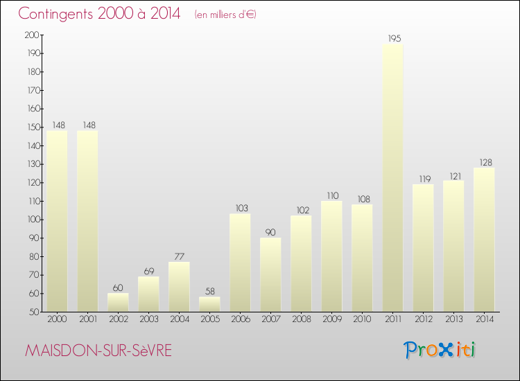 En 2014, à Maisdon-sur-Sèvre, ce budget est en baisse de 0.19 % par rapport à 2013.