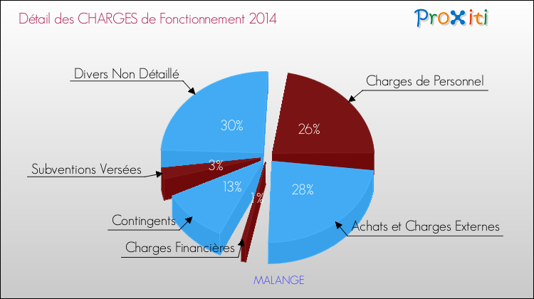 En 2014, les charges de fonctionnement de la commune de Malange étaient de : 118 000 €