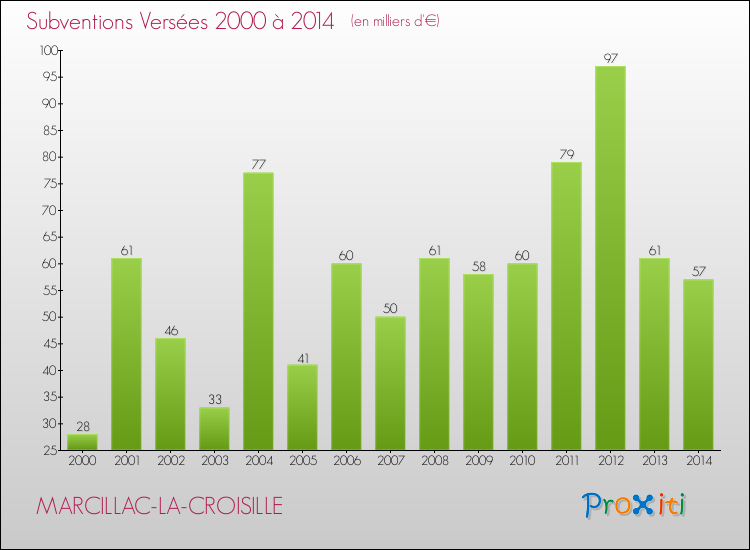 En 2014, à Marcillac-la-Croisille, ce budget est en baisse de 6.25 % par rapport à 2013.