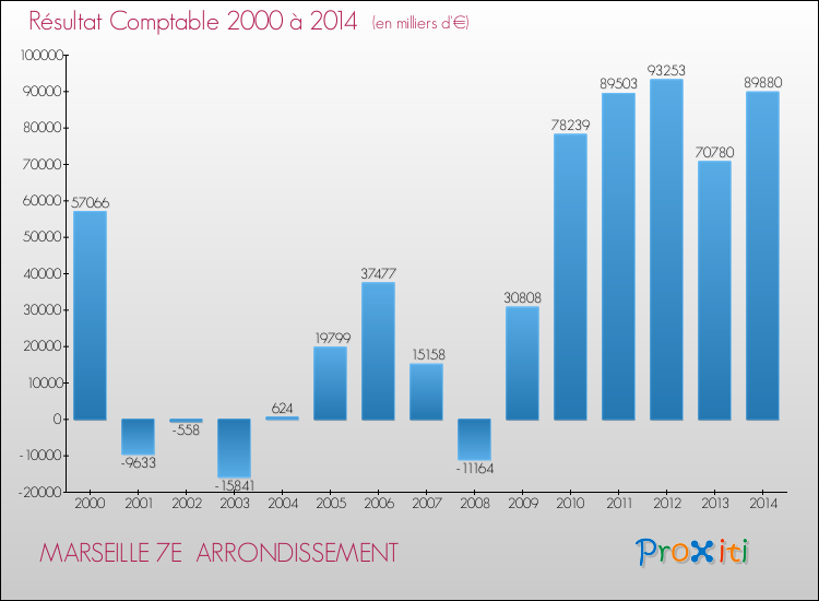 Le résultat comptable de la commune de Marseille 7e Arrondissement s'établissait ainsi à : + 89 880 000 € fin 2014.