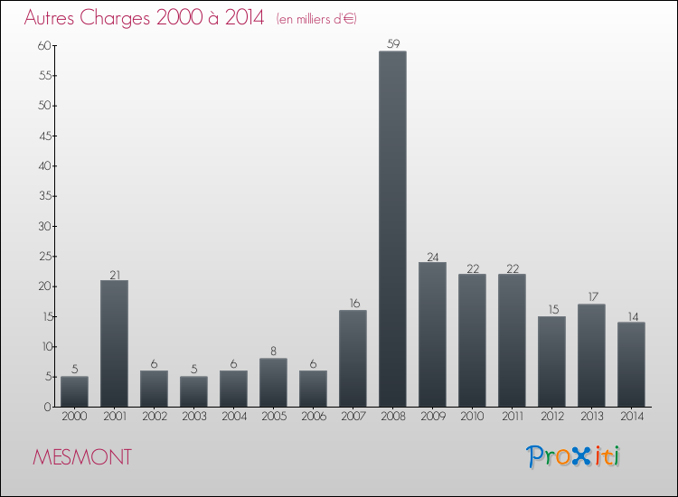 En 2014, à Mesmont, ce budget est en baisse de 10.28 % par rapport à 2013.