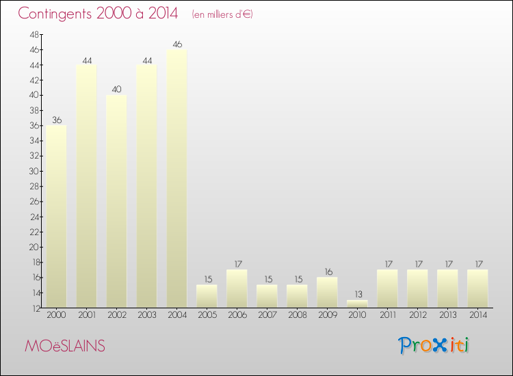 En 2014, à Moëslains, ce budget est en baisse de 2.84 % par rapport à 2013.