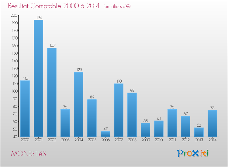 Le résultat comptable de la commune de Monestiés s'établissait ainsi à : + 75 000 € fin 2014.