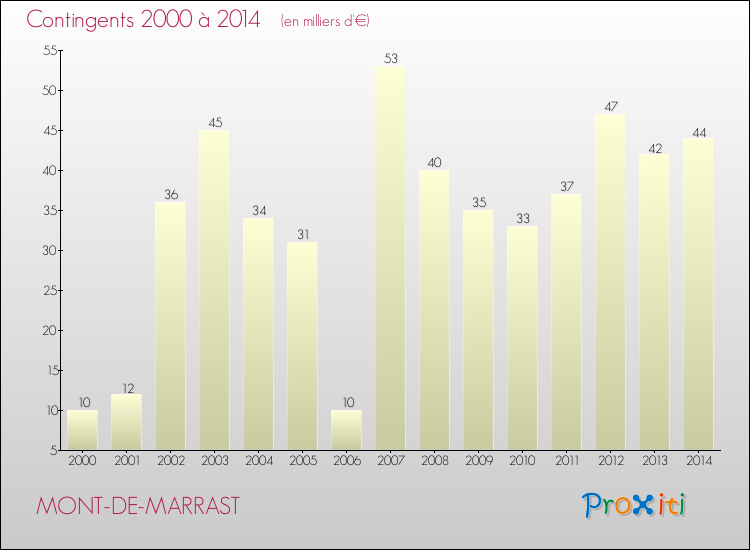 En 2014, à Mont-de-Marrast, ce budget est en baisse de 2.17 % par rapport à 2013.
