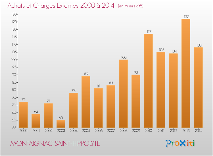 En 2014, à Montaignac-Saint-Hippolyte, ce budget est en baisse de 4.04 % par rapport à 2013.