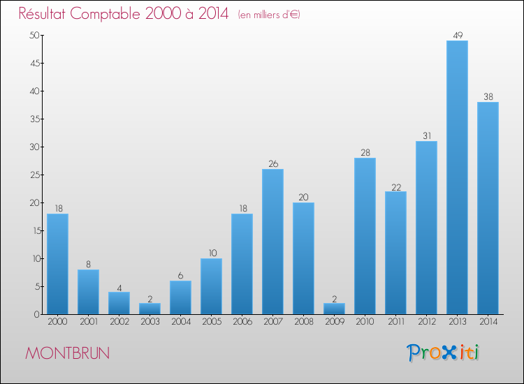 Le résultat comptable de la commune de Montbrun s'établissait ainsi à : + 38 000 € fin 2014.