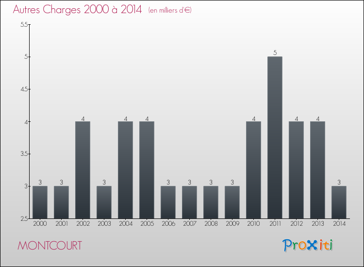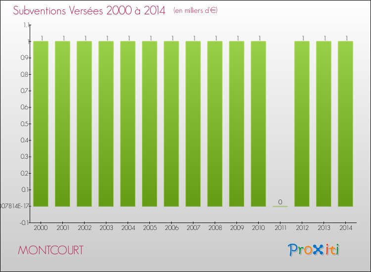 En 2014, à Montcourt, ce budget est en baisse de 47.17 % par rapport à 2013.