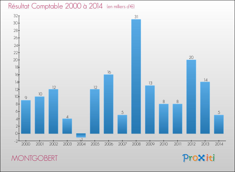 Le résultat comptable de la commune de Montgobert s'établissait ainsi à : + 5 000 € fin 2014.