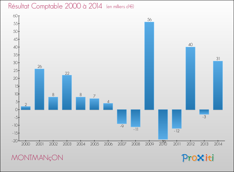 Le résultat comptable de la commune de Montmançon s'établissait ainsi à : + 31 000 € fin 2014.