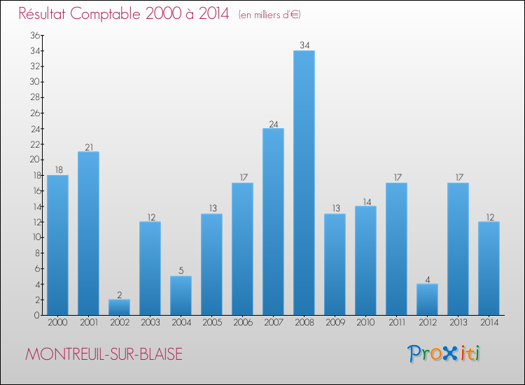 Le résultat comptable de la commune de Montreuil-sur-Blaise s'établissait ainsi à : + 12 000 € fin 2014.