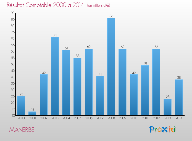 Le résultat comptable de la commune de Manerbe s'établissait ainsi à : + 38 000 € fin 2014.