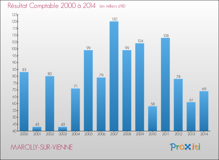 Le résultat comptable de la commune de Marcilly-sur-Vienne s'établissait ainsi à : + 69 000 € fin 2014.