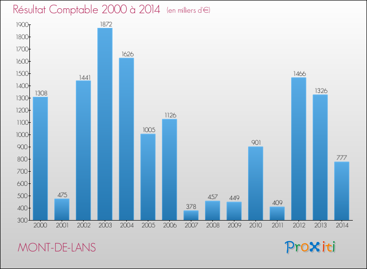 Le résultat comptable de la commune de Mont-de-Lans s'établissait ainsi à : + 777 000 € fin 2014.
