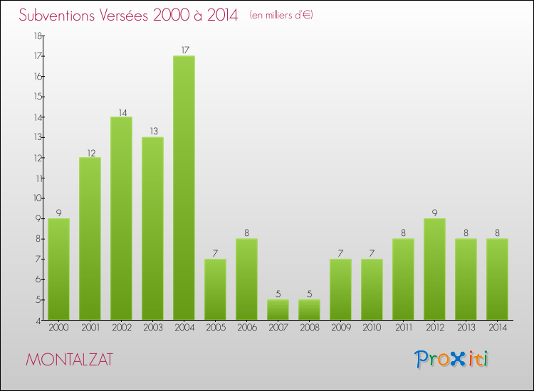 En 2014, à Montalzat, ce budget est en augmentation de 11.71 % par rapport à 2013.