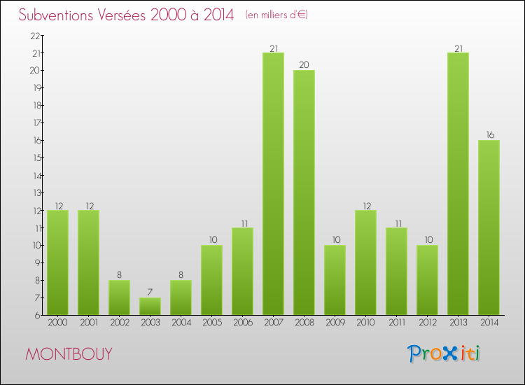 En 2014, à Montbouy, ce budget est en augmentation de 6.68 % par rapport à 2013.