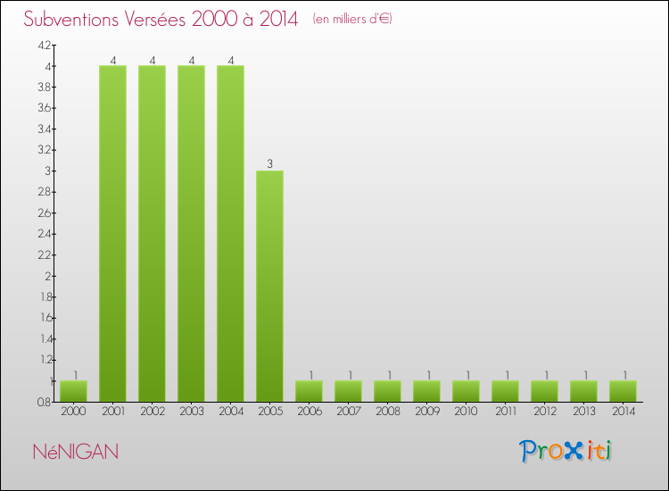 En 2014, à Nénigan, ce budget est en baisse de 8.7 % par rapport à 2013.