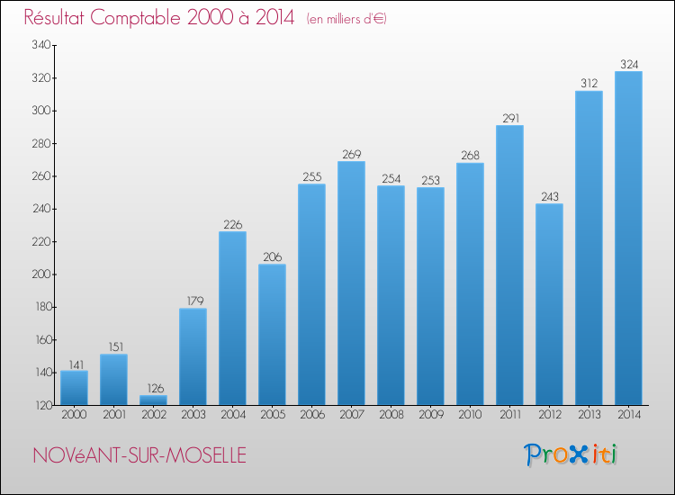 Le résultat comptable de la commune de Novéant-sur-Moselle s'établissait ainsi à : + 324 000 € fin 2014.