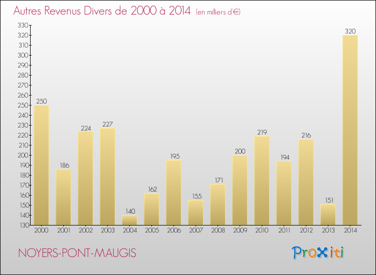 En 2014, à Noyers-Pont-Maugis, ce budget est en augmentation de 18.47 % par rapport à 2013.